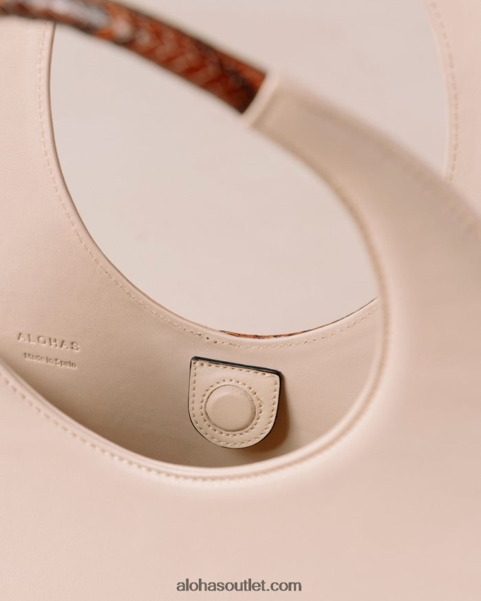 bolsa de couro branco e bege com alça superior